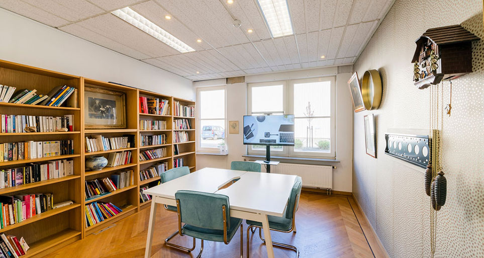 Our smallest room, perfect for confidential meetings, interviews and small group work sessions. Bathed in natural light, the Library offers a setting conducive to concentration and in-depth exchanges in a hushed, professional atmosphere.
